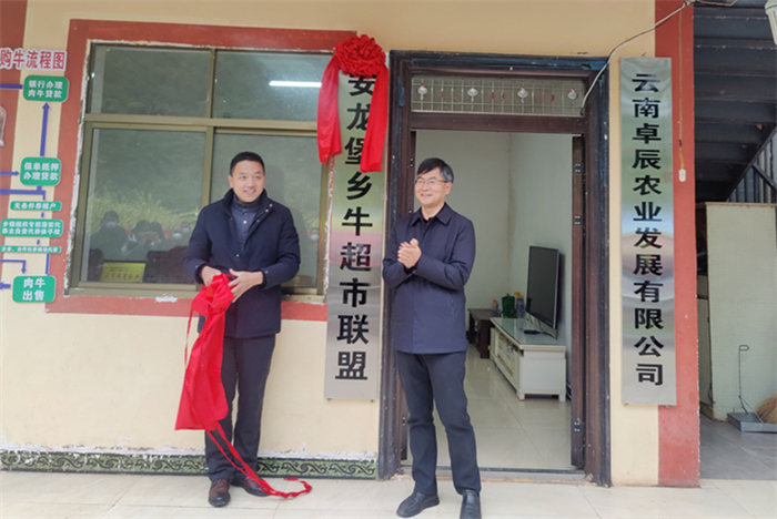在辞旧迎新的隆冬时节,双柏县两个“牛超市”总部和两个“牛超市”联盟挂牌成立,迎接八方宾客,开市收牛售牛等经营活动。