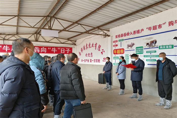 在双柏县委县政府的高度重视和领导下,先后出台了《双柏县肉牛肉羊产业高质量扶持意见》《双柏县发展肉牛养殖助力低收入家庭户增收实施方案》及其细则等,明确“一年打基础、三年强体系、五年见成效”的产业发展方针,明确了到2025年全县肉牛存栏达11万头以上、肉牛出栏达3万头以上、肉牛综合产值达4亿元以上和低收入家庭户肉牛养殖全覆盖,肉牛产业高质量发展和产业带动低收入人群稳定增收的目标、措施和扶持政策等,通过党建引领、龙头带动、保险护航、金融支持、资源配置、服务保障等措施发展肉牛养殖增收的具体工作。“牛超市”总部和联盟,执行“六方议价”评估购牛售牛,价格公正透明,并按照“六统一”要求从根本上解决“牛从哪里来、怎么养、卖到哪里去”的难题。同天,双柏县肉牛养殖综合服务中心揭牌成立,为更好开展肉牛养殖等服务打下了良好的基础。当天,成功交易肉牛109头,57户低收入家庭户买到了心仪之牛。