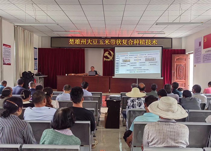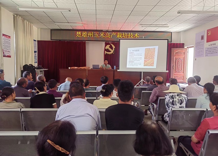 培训会上,楚雄州植保植检站站长王贵斌就《2024年省级农业发展专项水稻病虫害监测防控及稻飞虱应急防控储备项目》作了介绍,对楚雄市子午镇实施的2500亩水稻绿色高质高效病虫害监测与防控示范样板提出具体要求;子午镇农业农村服务中心主任高级农艺师姜中徐就子午镇实施的示范样板进展情况做了汇报;楚雄州农科院和市植保植检站有关专业技术人员讲授了玉米高产栽培、大豆玉米带状复合种植、水稻病虫害防治及农药科学安全使用等技术。