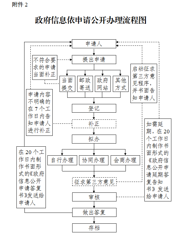 本部门征求第三方和其他机关意见所需时间不计入申请办理期限。(附件2:政府信息依申请公开工作流程图)